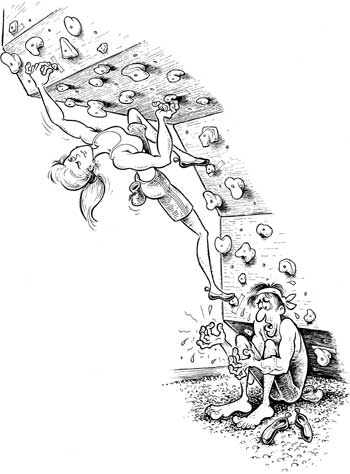 几乎所有的攀岩者,在完成一条抱石路线以后,就把它扔到一边儿了。其实当你完成一条很难的路线时,训练才刚刚开始。第二个小时我们要做的就是温习,竭尽全力提高已熟练了的动作的效率,巩固技巧,同时训练耐力。